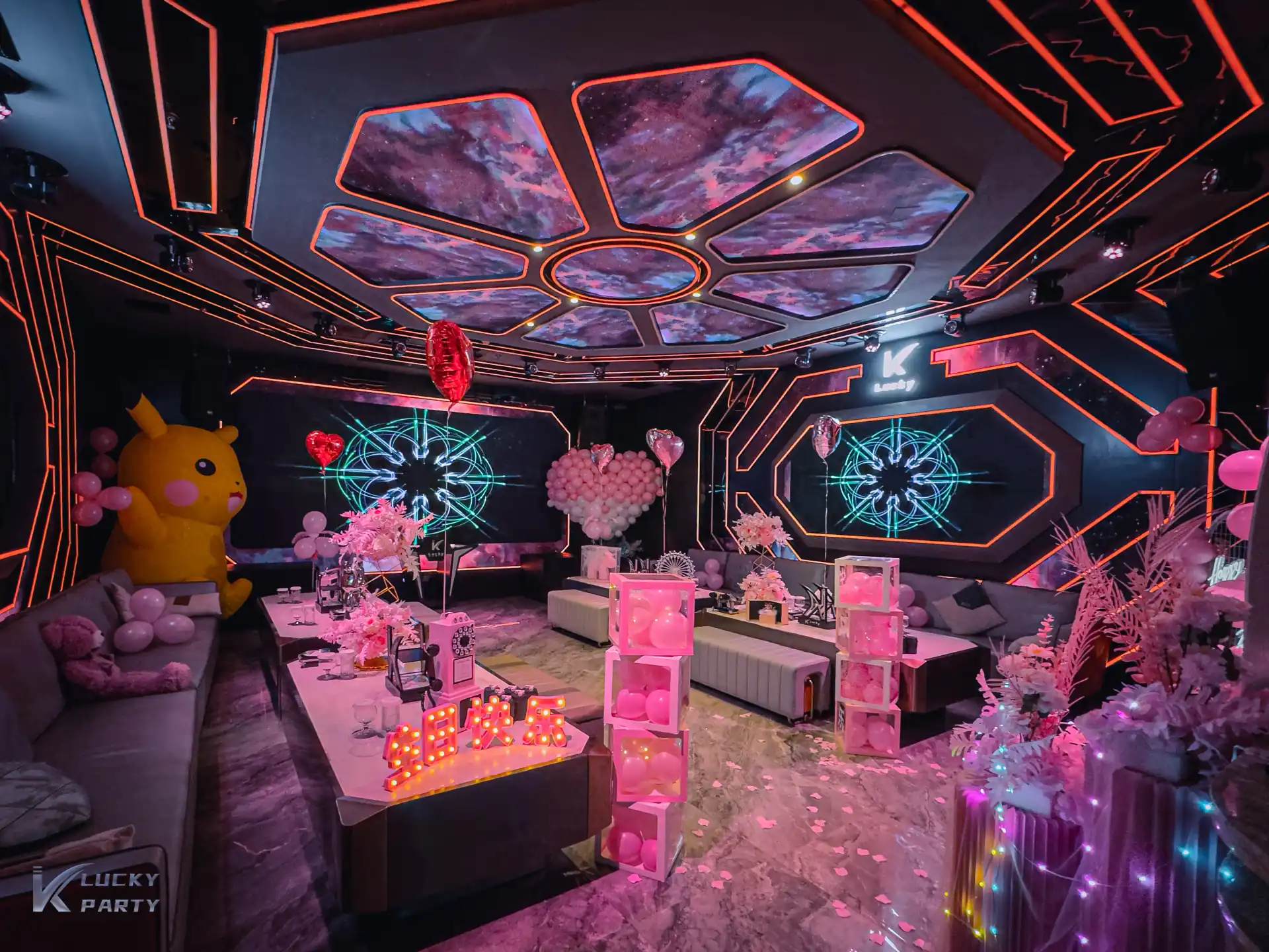 粉色系气球装饰 / 生日横幅 / 主题灯光